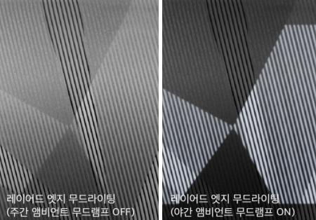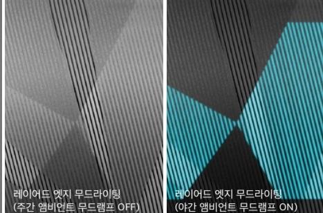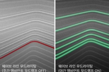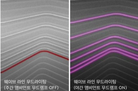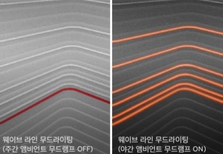 웨이브라인, 레이어드 엣지 등 패턴이 적용된 엠비언트 라이트가 차량 고급감에 정말 많은 영향을 끼칠 것이라 생각됩니다.