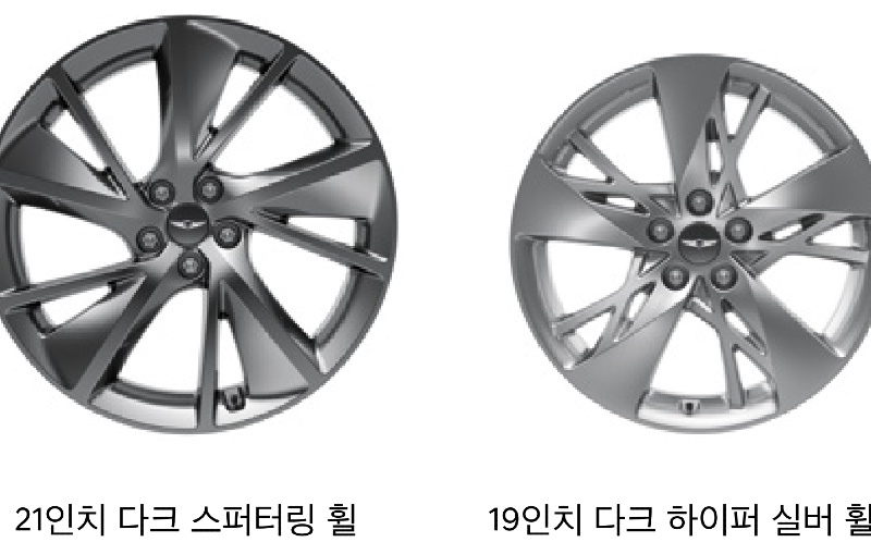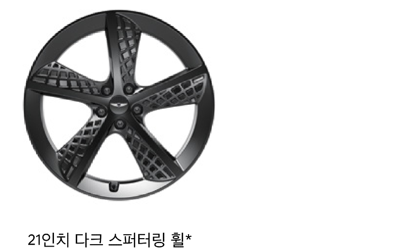 맨 마지막 21인치 다크 스퍼터링 휠, 이 휠이 GV70의 시그니처 휠이라고 볼 수 있습니다. 물론 가장 상위 트림에 가야 적용 할 수 있을 것으로 보입니다.