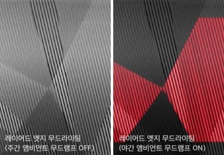 이전 도어트림이나 대쉬보드에 한줄로 들어가는 엠비언트라이트와 달리 '디자인 엠비언트라이트'가 적용됐습니다.