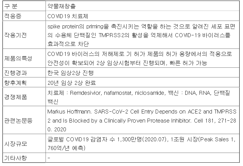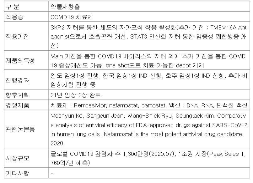 대웅제약 코로나19 치료제 연구개발 현황