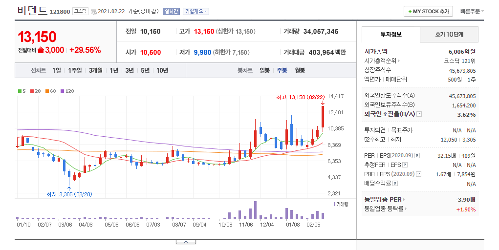 이러한 가상화폐 폭등에 따라 자금이 유입되며, 가상화폐 거래소 관련 주식인 비덴트가 금일 상한가를 기록했습니다.