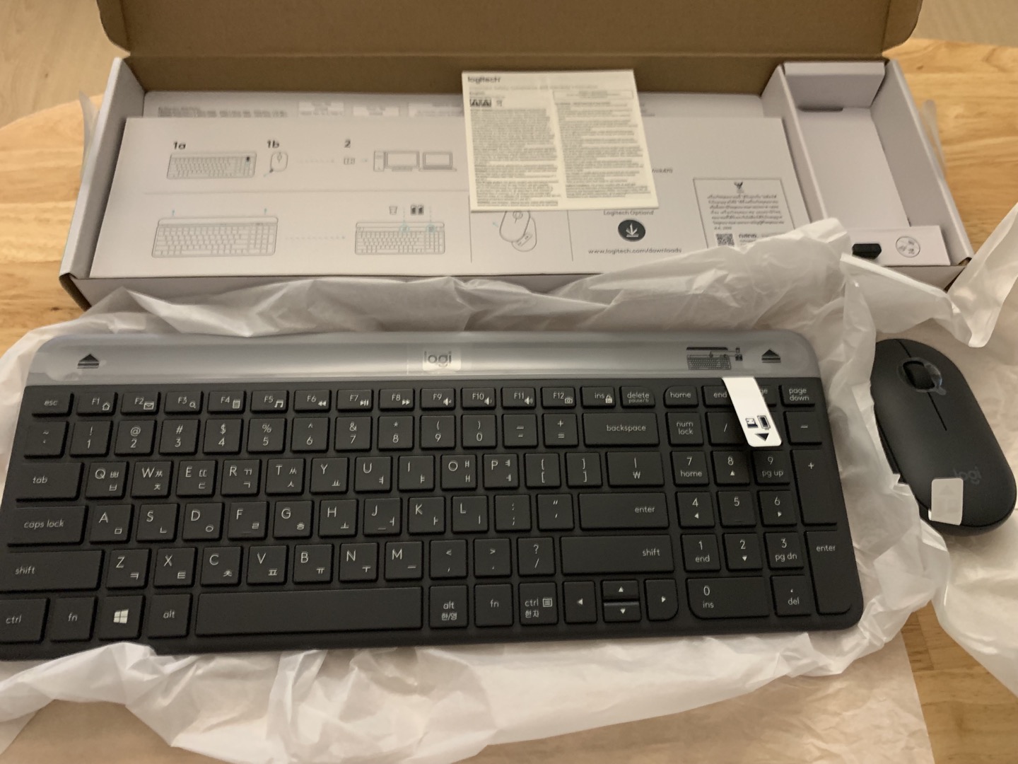 키보드 마우스 각각 별도 종이 포장이 따로 되어있습니다.