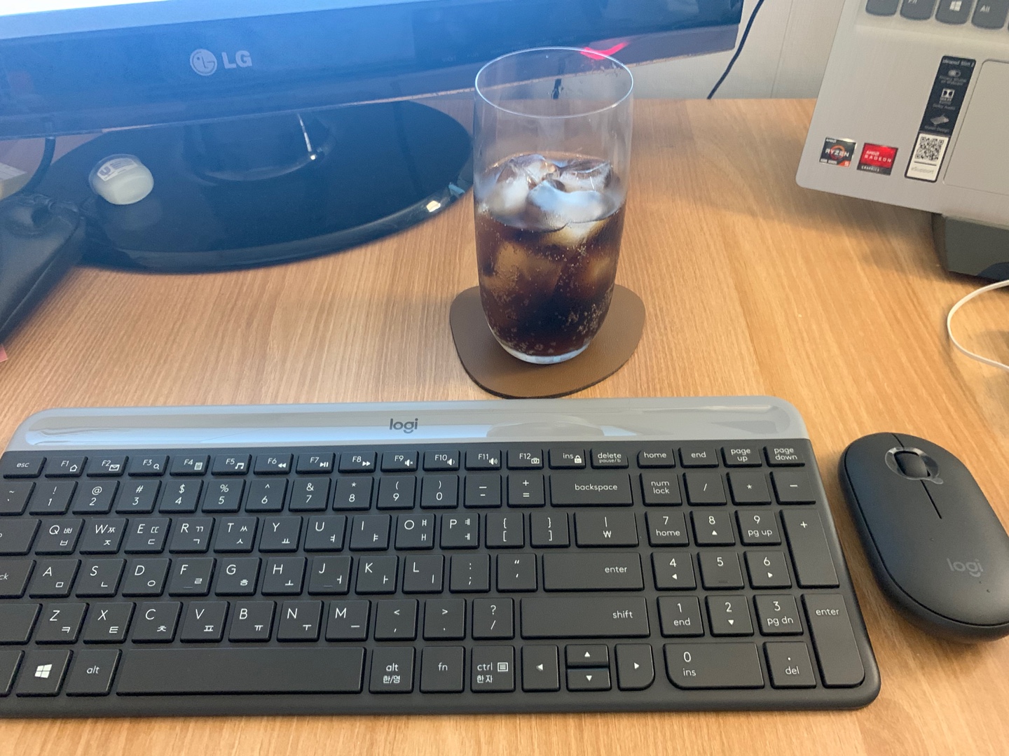 확실히 무선 키보드, 마우스다 보니 컴퓨터 책상이 깔끔해진 모습입니다.