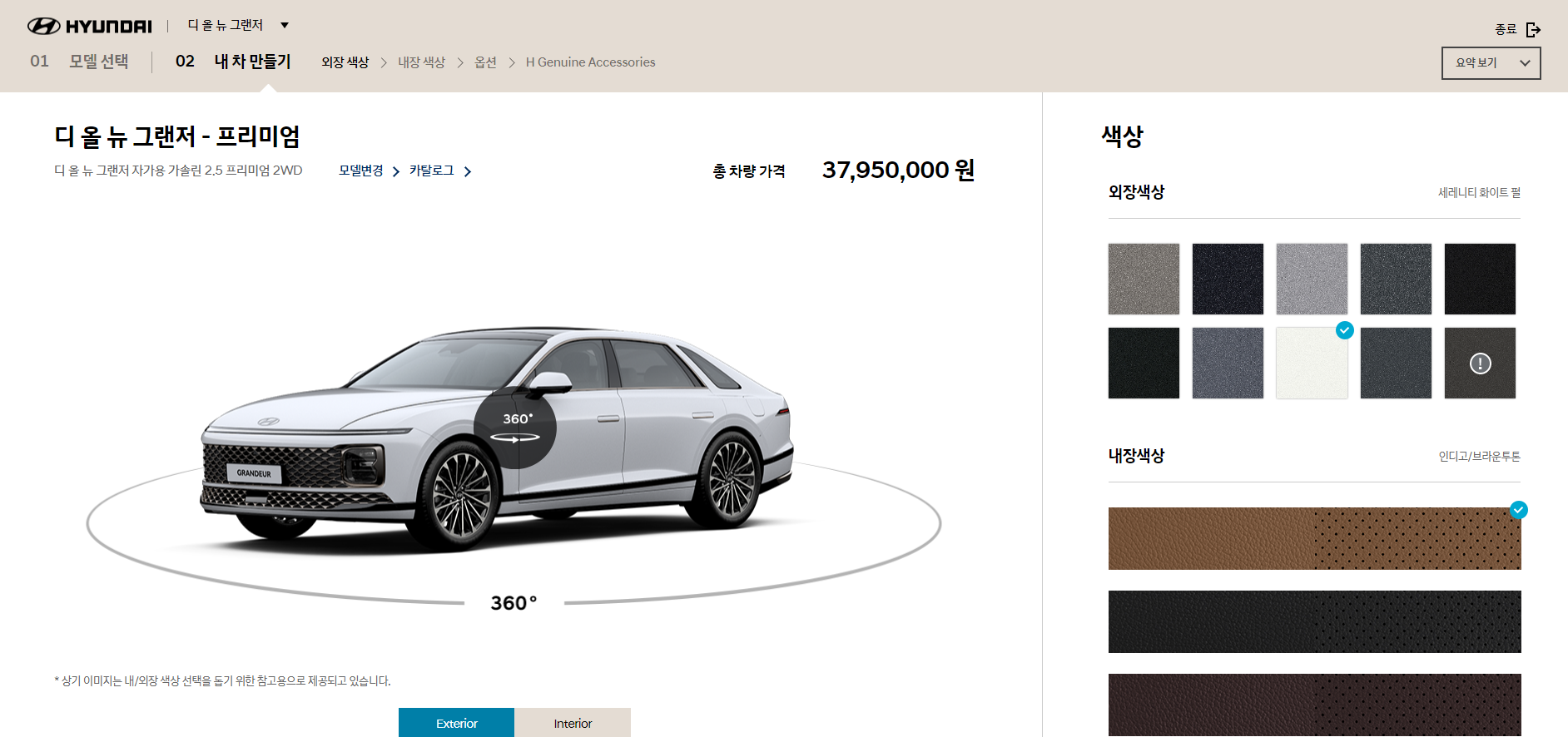외장 및 내장 컬러 선택